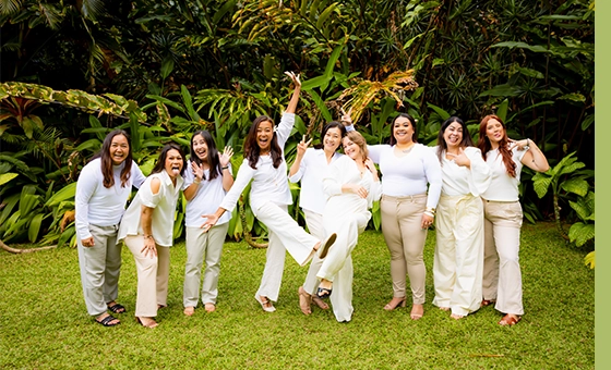 Dentist Aiea HI Arleen Regala And Angela Su With Team Doing Silly Pose HP