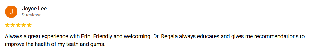 5-Star Review From Joyce Lee Praising Regala and Su, DDS
